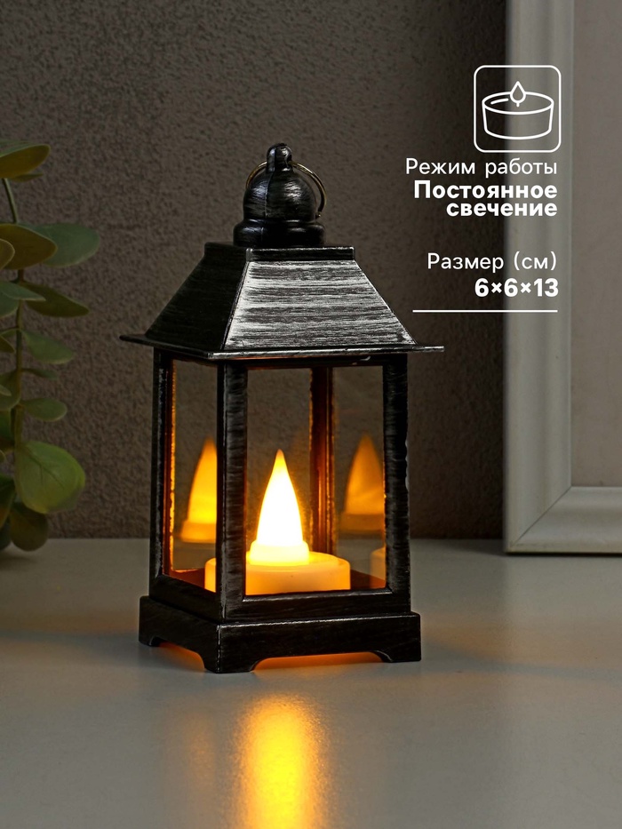 Представляем стильный ночник в форме миниатюрного фонаря, который станет источником мягкого света и уюта в вашем доме. Эта компактная светодиодная свеча размером 6×6×13 см выполнена в чёрно-серебристых тонах, что делает её универсальным дополнением для любого интерьера. Благодаря удобной конструкции и возможности работы от батареек, она легко разместится на столе, полке или даже подвесится в качестве декоративного элемента.