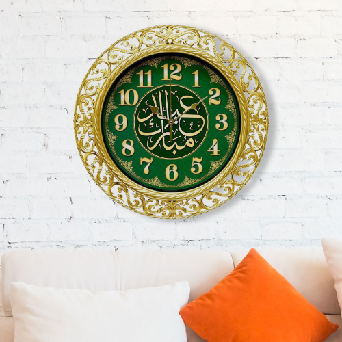 Часы настенные круглые с узором d39,5см "Молитва", корпус золотой