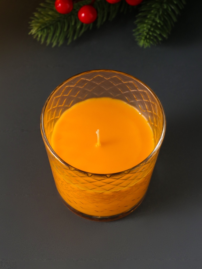 Свеча ароматическая в стакане «Зимний мандарин», подарочная упаковка, 8×8.5 см, 30 ч
