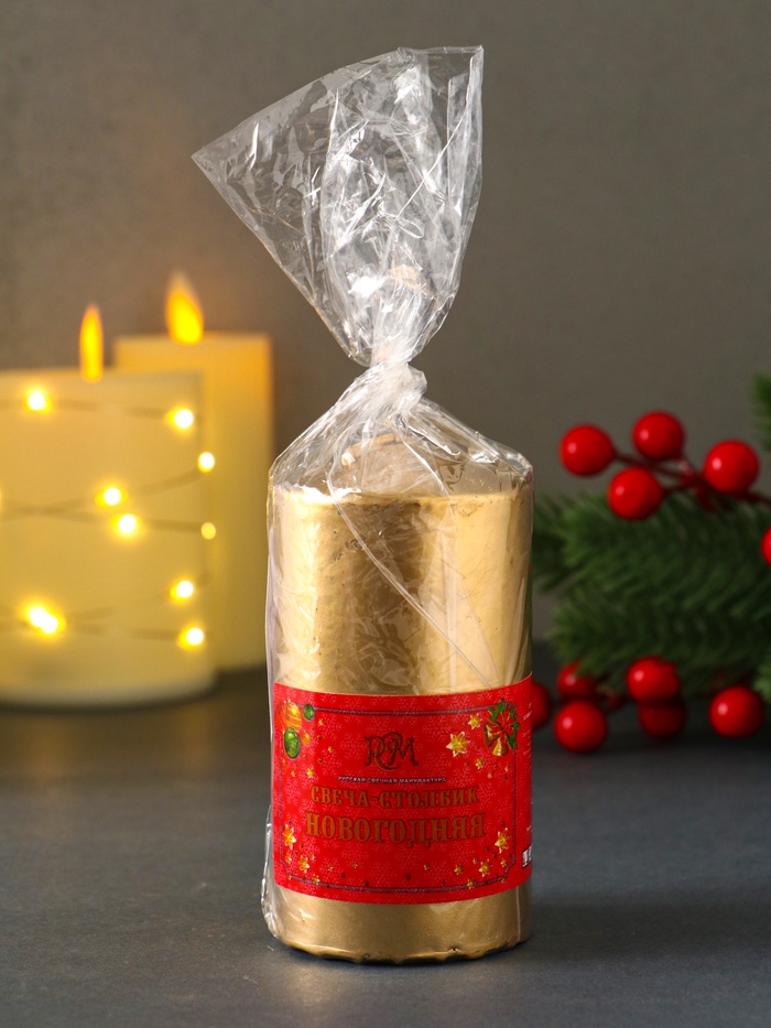 Свеча - цилиндр «Новогодняя ночь», 100×50 см, золотой