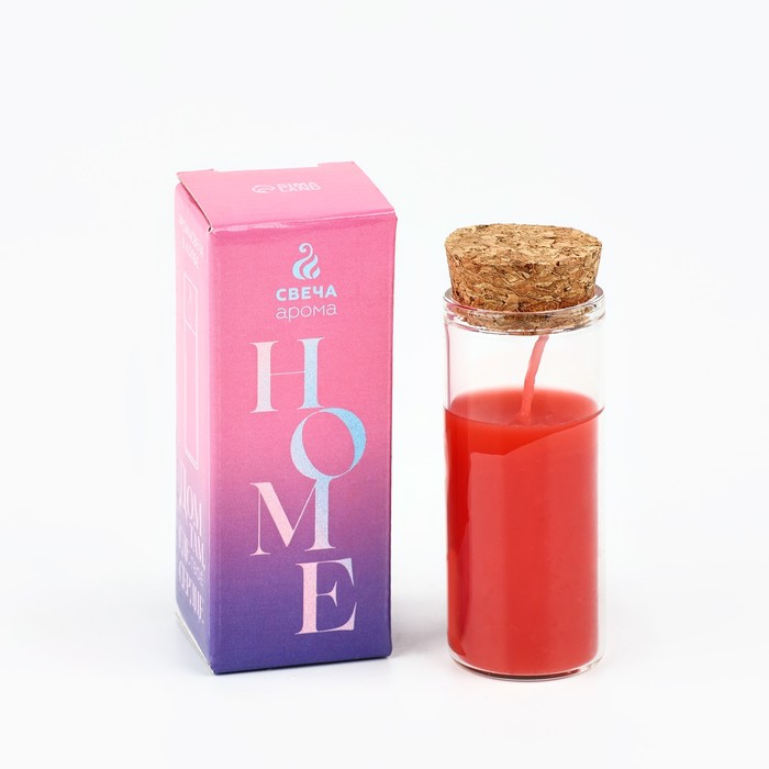 Свеча упакована в коробку с изображением дома и надписью «Дом там, где твоё сердце».