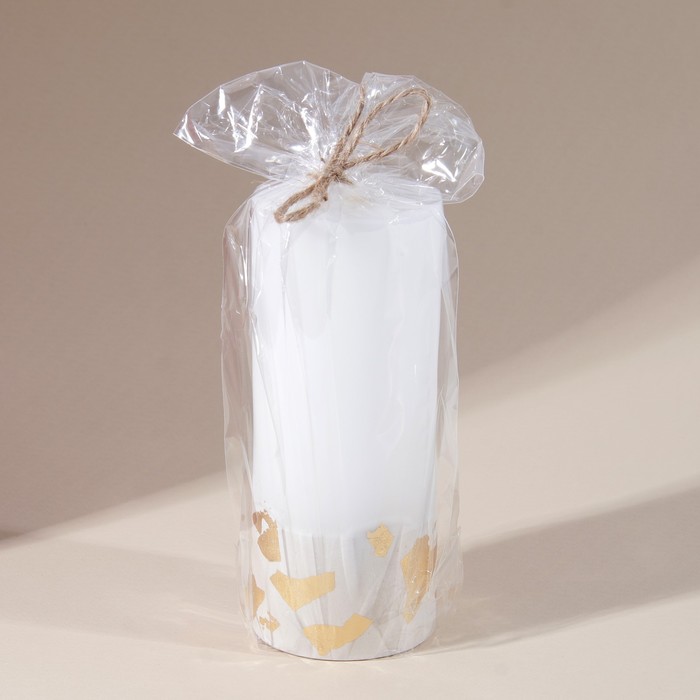 Свеча упакована в прозрачную пленку, перевязанную джутовой веревкой.