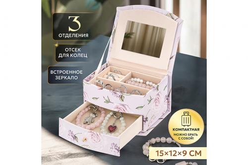 Шкатулка для украшений 15*12,5*9 см "Eternal" с зеркалом 2-х ярусная