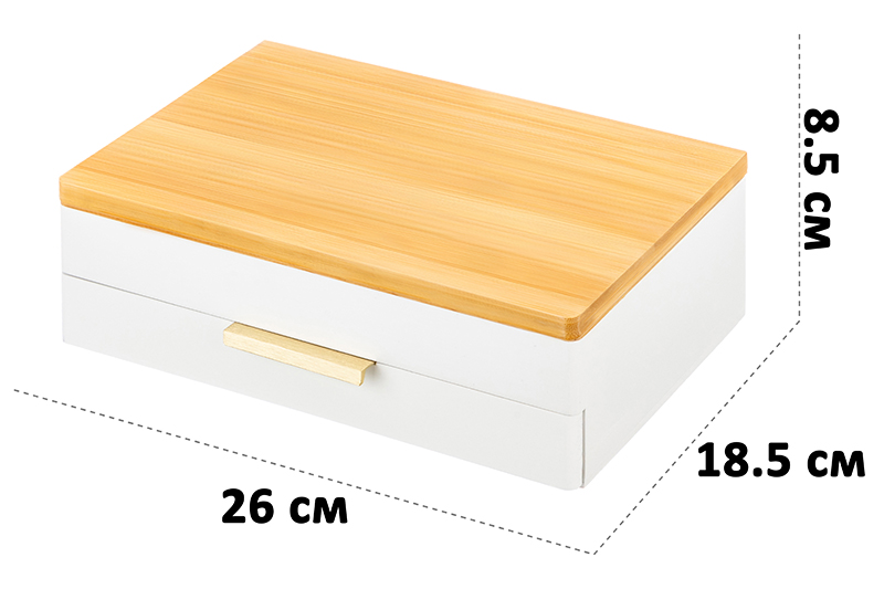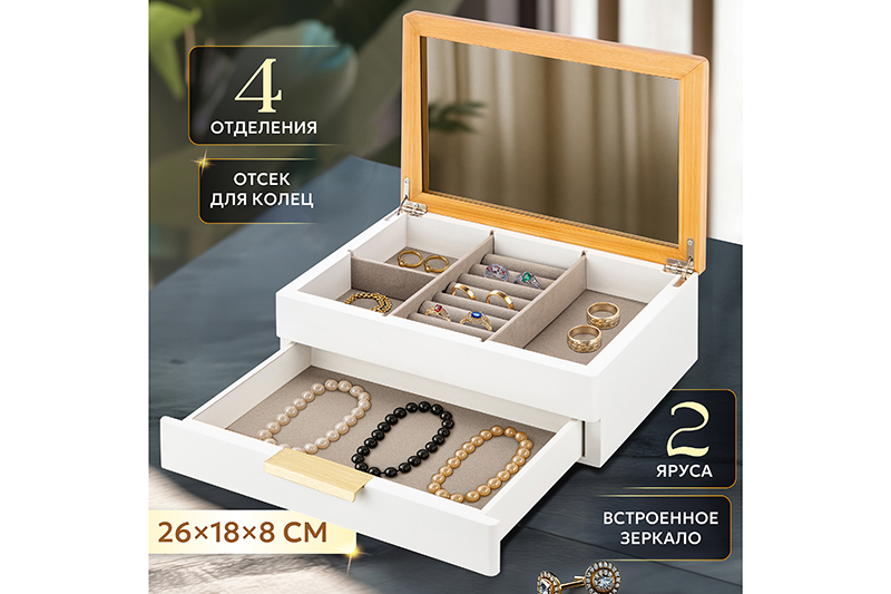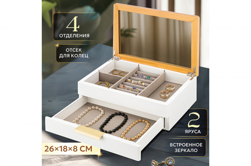 Шкатулка для украшений 26*18,5*8.5 см с зеркалом, 2-х ярусная, мдф/бамбук