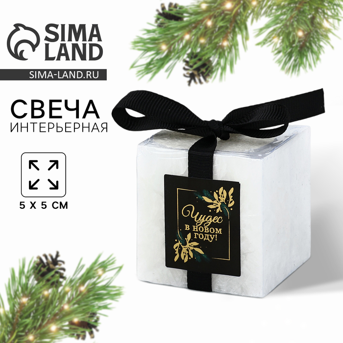 Свеча новогодняя «Куб. Чудес», белая, 5×5 см