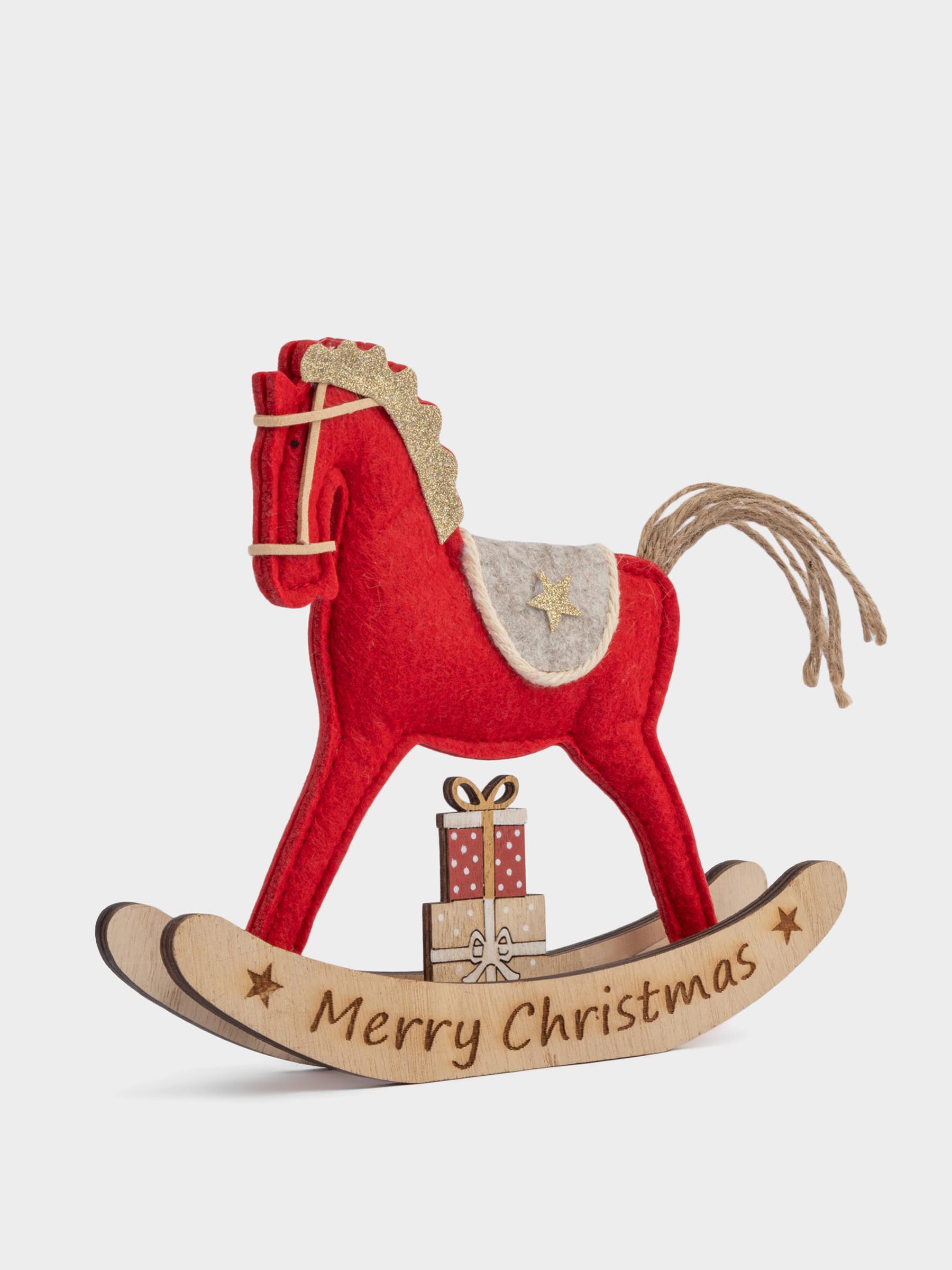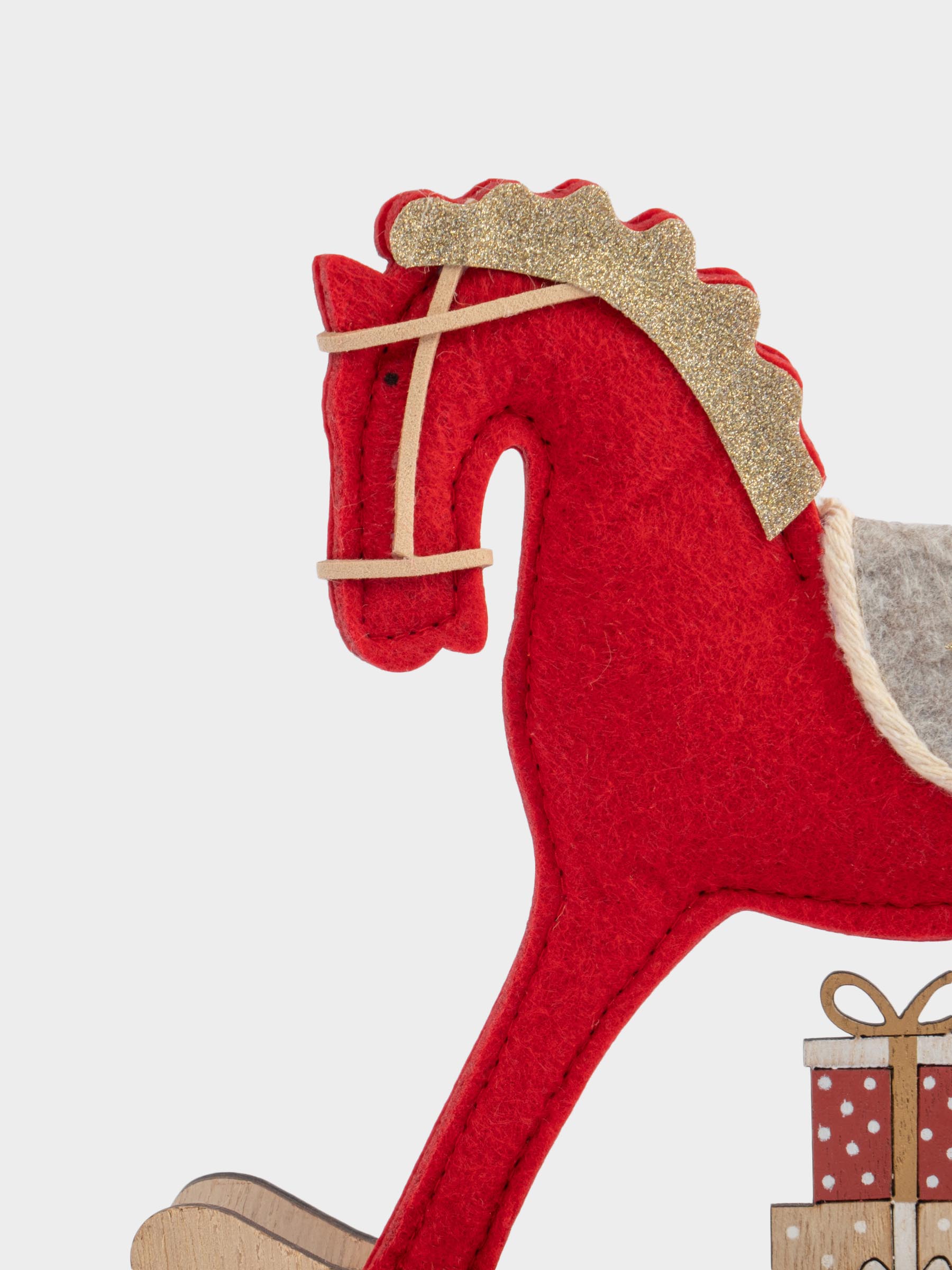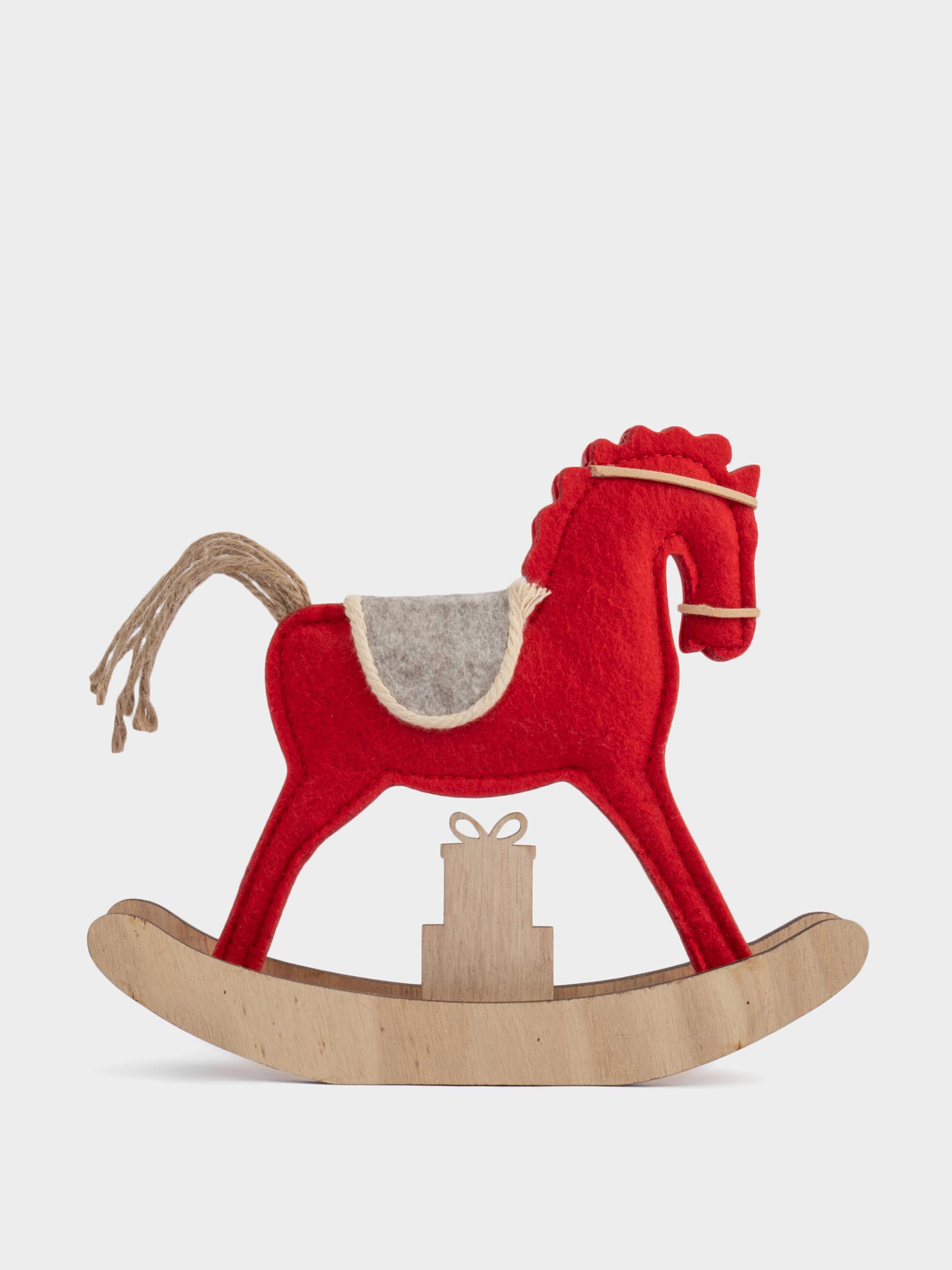 Статуэтка, 19 см, фетр/МДФ, красная, Лошадка-качалка, Bright horse
