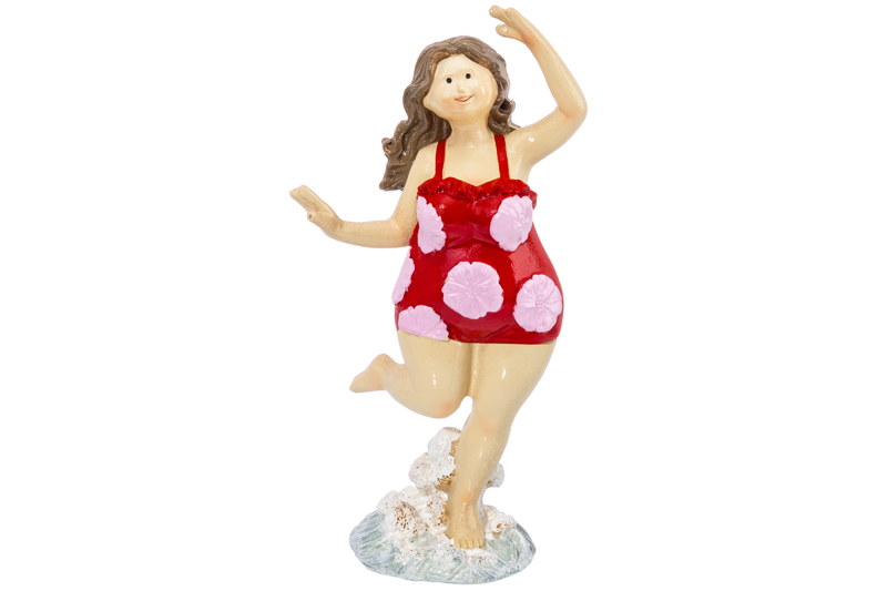 Декоративная статуэтка «Девушка в красном» от Elan Gallery преобразит любое помещение. Размер изделия – 8,5х5,5х16,5 см. Выполнена из полирезина – современного материала, который славится своей лёгкостью, устойчивостью к влаге и солнечным лучам. Он не выделяет вредных веществ и не имеет запаха. Полирезин легко поддаётся обработке, поэтому изделия из него отличаются своей реалистичностью и проработанной детализацией. Жизнерадостная пышная женщина одета в красный купальник с рельефными розовыми цветами. В её ногах плещется морская пена, и она как будто танцует в ней. Настольная фигурка дополнит и освежит антураж любой комнаты. Разместите её на полке, комоде или письменном столе, создайте композицию с другими статуэтками и декоративными элементами. Она прекрасно украсит ванную комнату или летнюю террасу, подарит ощущение летнего тепла и расслабленности. Статуэтка, выполненная в тёплых тонах, подарит вам ощущение летней беззаботности и тепла. Не рекомендуется применять абразивные моющие средства. В коллекции бренда Элан Галерея вы найдёте множество как ярких, так и нежных декоративных украшений – каждый обязательно подберёт сувенир на свой вкус. Они станут чудесным подарком для родных, близких и коллег. Наполните пространство вокруг себя красотой и радостью!