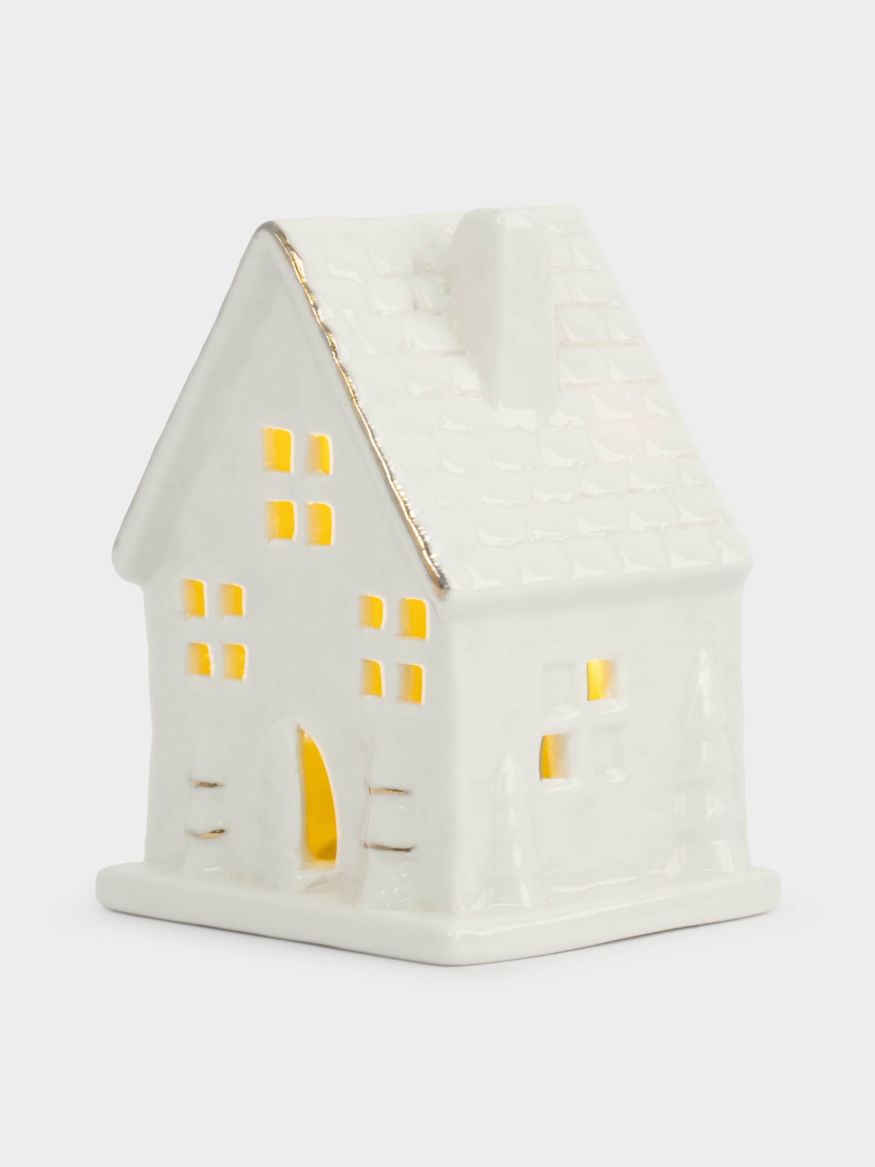 Статуэтка с подсветкой, 8 см, фарфор P, бело-золотистый, Дом, Townlet