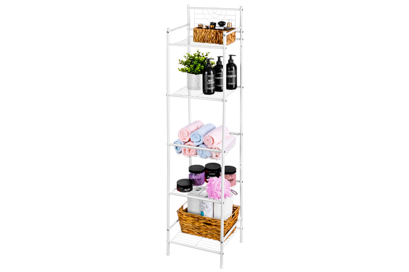 Стеллаж 33х29,5х148,5 см поможет организовать хранение в ванной, на кухне, в коридоре, спальне или детской. Напольная стойка имеет 4 стандартных полки и полку-корзину, которые можно установить в нужном вам порядке. Расстояние между полками 30 см. Размер полки 29х29 см, глубина корзины 6 см. Максимальная нагрузка на каждую полку 5 кг. В ванной можно использовать для хранения полотенец, бытовой химии, средств для умывания и других вещей. На кухне шкафчик с полками подойдет для овощей, фруктов, посуды, столовых приборов и кухонных аксессуаров. В прихожей можно использовать для шапок и перчаток. Используйте металлическую этажерку в офисе для документов, бумаги, канцелярии. В квартире подойдет для хранения книг или одежды. На ножках имеются пластиковые заглушки: не будет скользить и оставлять царапин. Многоярусный шкаф поможет организовать систему для хранения вещей дома, на даче, в гараже или офисе. /