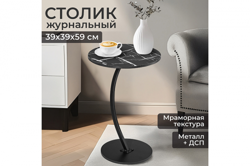 Столик журнальный 39,5*39,5*59,5 см "Белый мрамор", прикроватный круглый