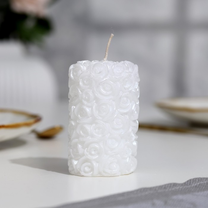 Свеча - цилиндр свадебная «Розы», 4.5×7.5 см, домашний очаг