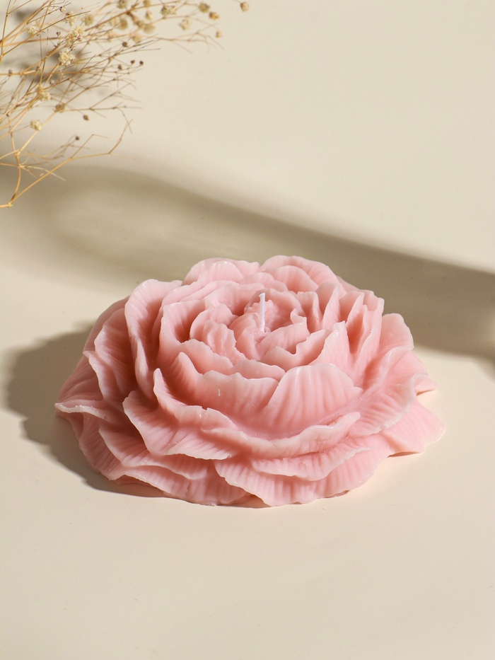 Эта декоративная свеча в форме пиона создаёт настроение уюта и спокойной эстетики. Мягкий оттенок пыльной розы и изящный рельеф лепестков превращают её в самостоятельный элемент декора, даже когда фитиль не горит.
