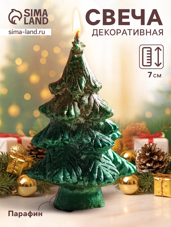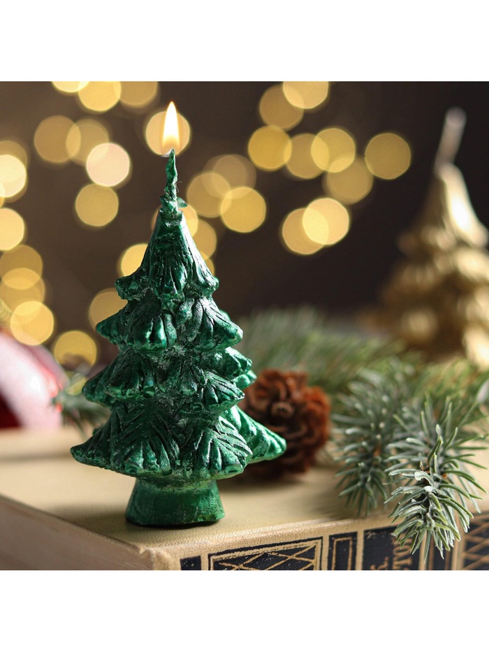 Свеча декоративная «Ёлочка», 7 см, зелёная, МИКС