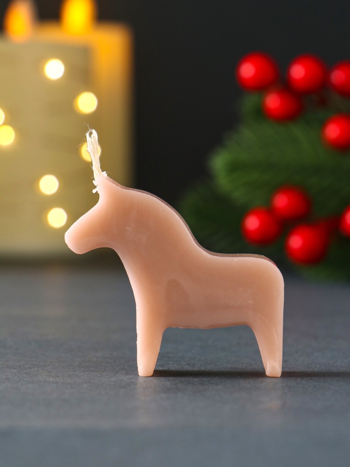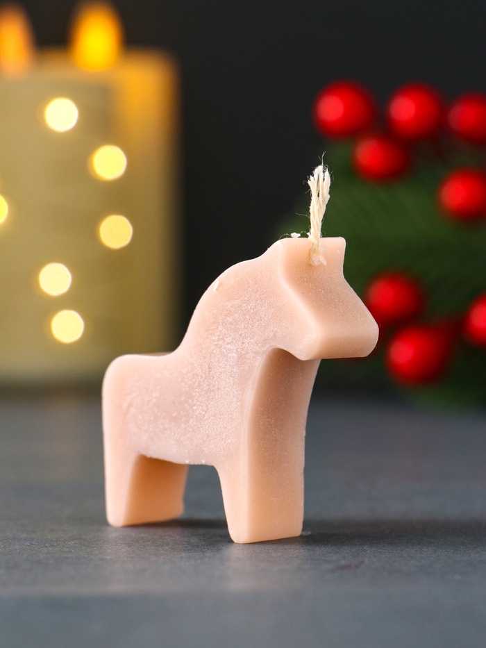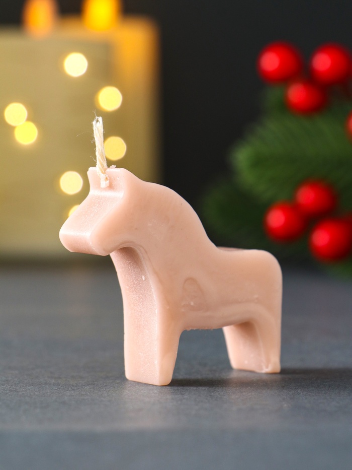 Миниатюрная свеча в виде лошадки создаёт уютную атмосферу праздника. Эта бежевая фигурка из парафина станет тёплым дополнением новогоднего декора или маленьким подарком, символизирующим наступающий год.