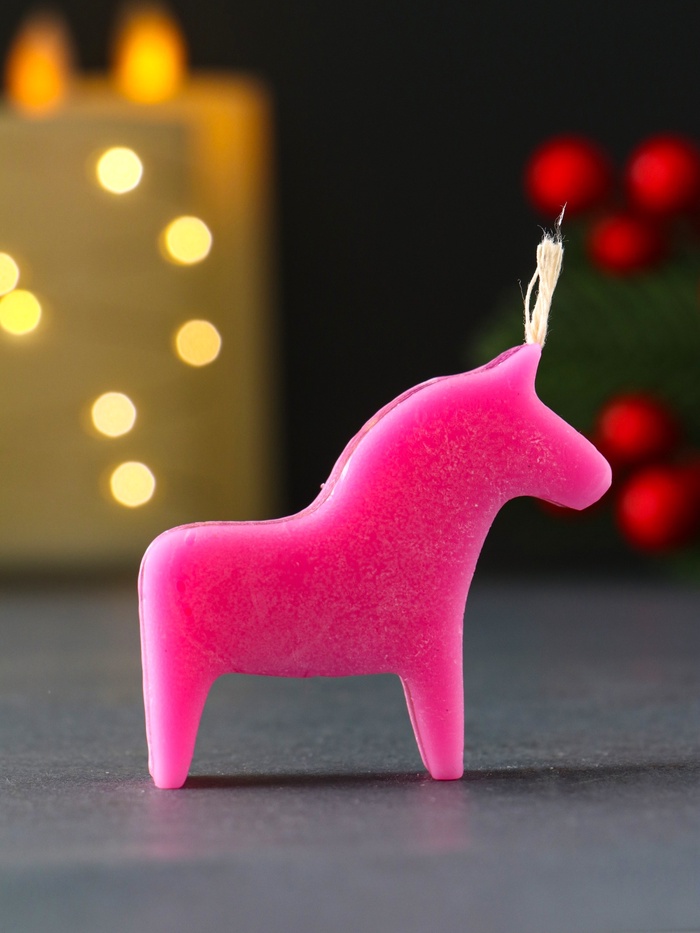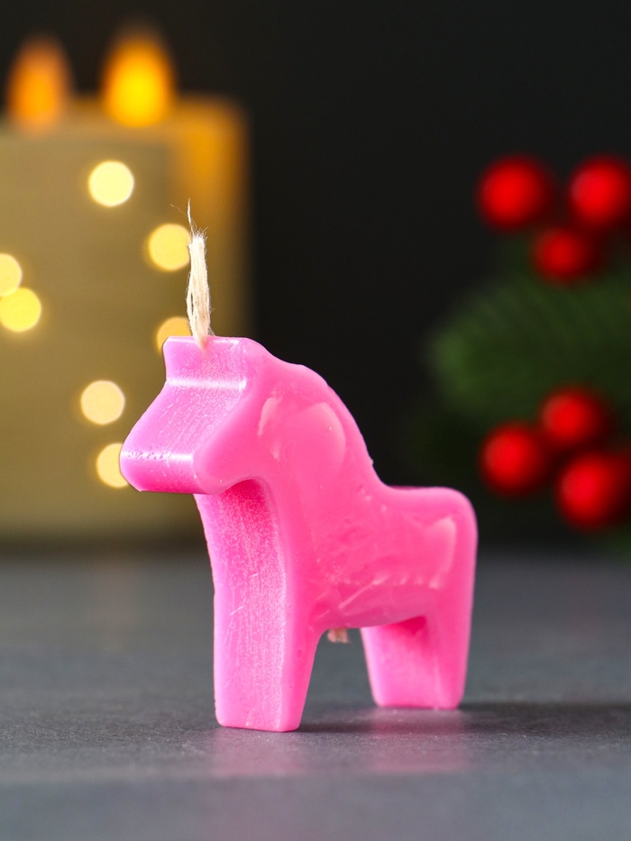 Эта розовая свеча в виде лошадки создаёт праздничное настроение и становится милым дополнением новогоднего декора. Миниатюрный размер делает её универсальным аксессуаром для украшения праздничного стола, создания уюта в любой комнате или оформления композиций в каминной зоне.