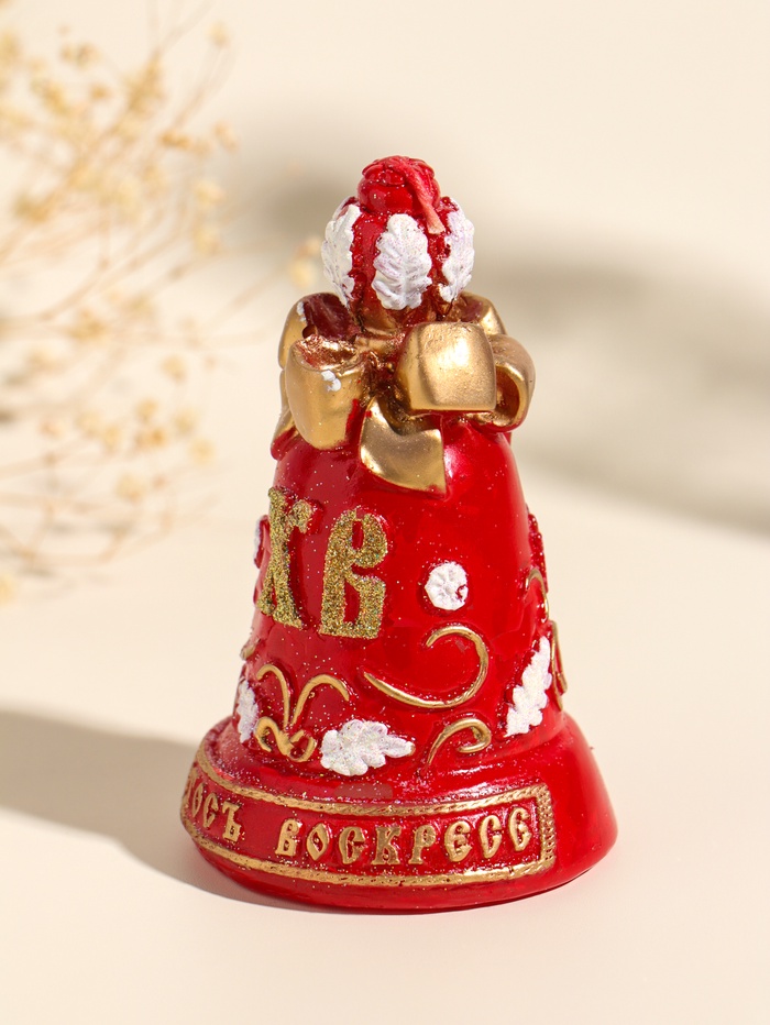 Эта пасхальная свеча в форме колокольчика наполнит ваш дом духом праздника. Её тёплое золотое сияние и яркие красные акценты создают настроение светлого торжества, а классическая форма станет центром праздничной композиции. Изготовленная из чистого парафина, свеча горит ровно и долго, становясь символом весеннего обновления и семейного уюта.