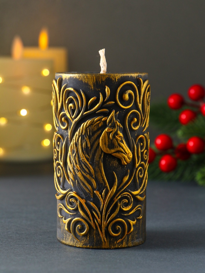 Эта бронзовая свеча-столбик с рельефным изображением лошади привносит в интерьер дух сдержанной элегантности. Её классическая форма и тёплый металлический отблеск создают атмосферу уюта и спокойствия, наполняя пространство мягким, живым светом.