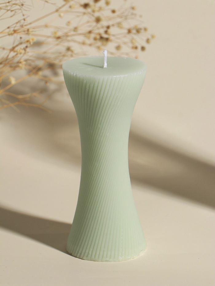 Эта декоративная свеча в нежно-зелёном цвете станет изящным акцентом для вашего интерьера. Её фигурный силуэт напоминает распускающийся бутон, привнося в обстановку ноту спокойствия и умиротворения.