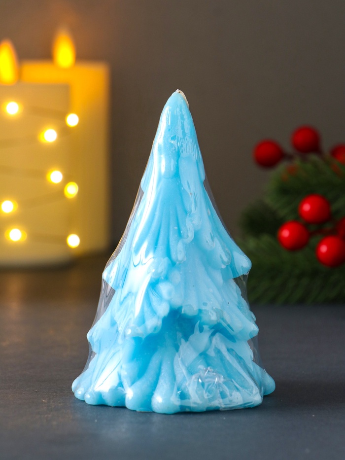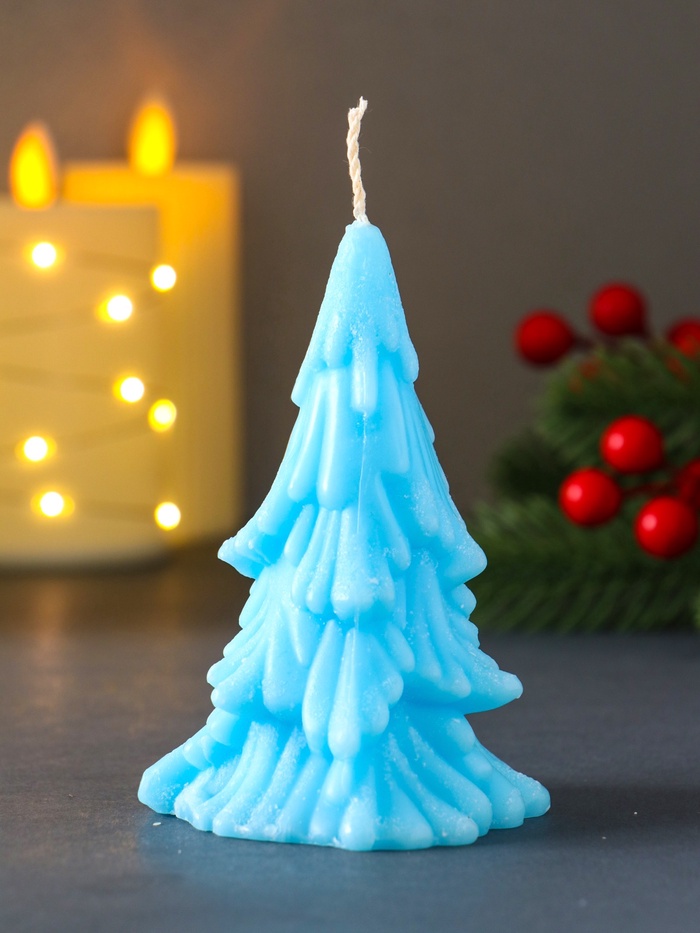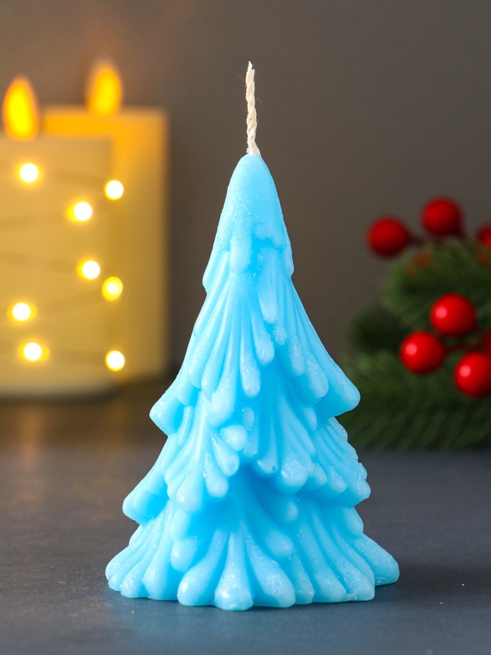 * Нежный зимний оттенок: Спокойный голубой цвет свечи напоминает о первых сумерках зимнего вечера или о сверкающем насте. Этот холодный тон эффектно контрастирует с традиционными тёплыми тонами праздника, создавая стильный и современный образ.