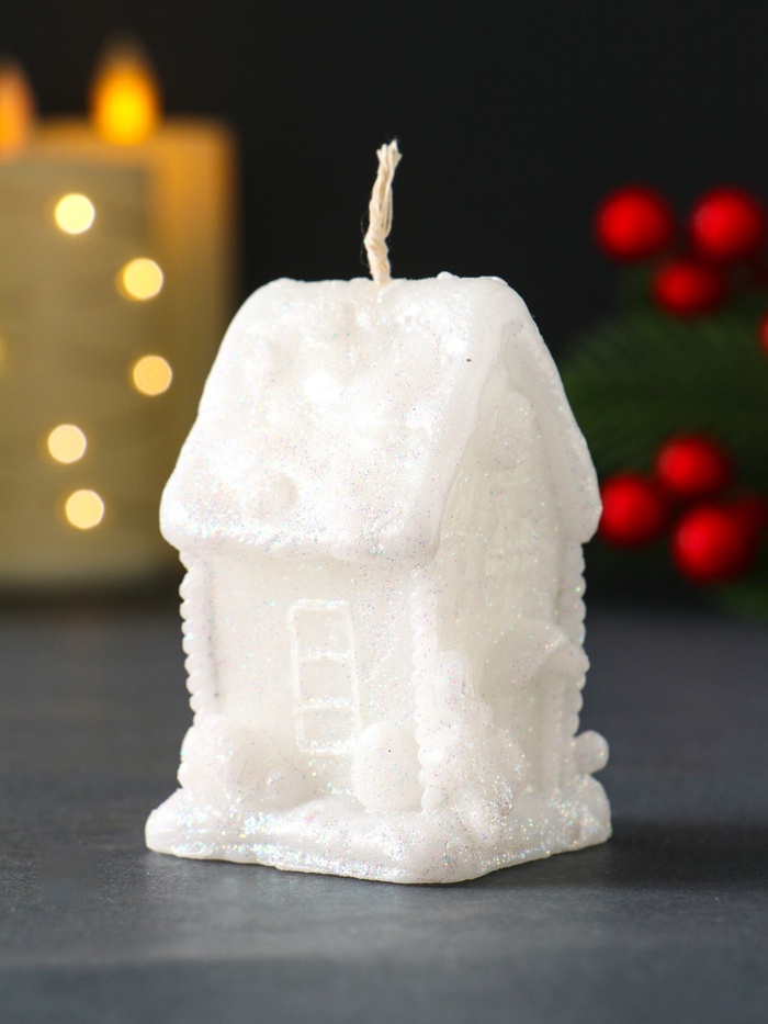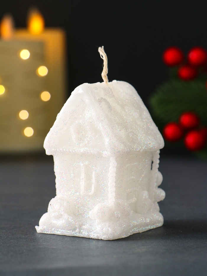 * Классика и универсальность: Белый цвет и лаконичный силуэт домика гармонично впишутся в любую цветовую гамму новогоднего интерьера. Свеча станет частью композиции с гирляндами, шишками и хвойными ветками, не перегружая пространство.