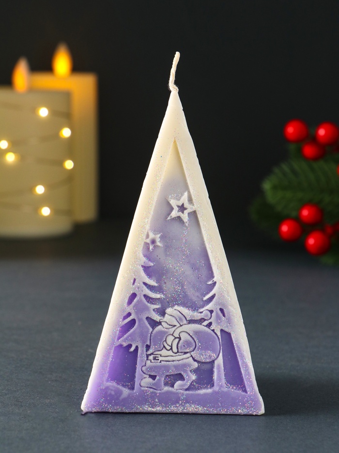 Эта фиолетовая свеча-пирамида станет ярким акцентом новогоднего уюта. Её классическая форма и глубокий оттенок создают особое настроение праздника, наполняя дом теплом и ожиданием чуда.