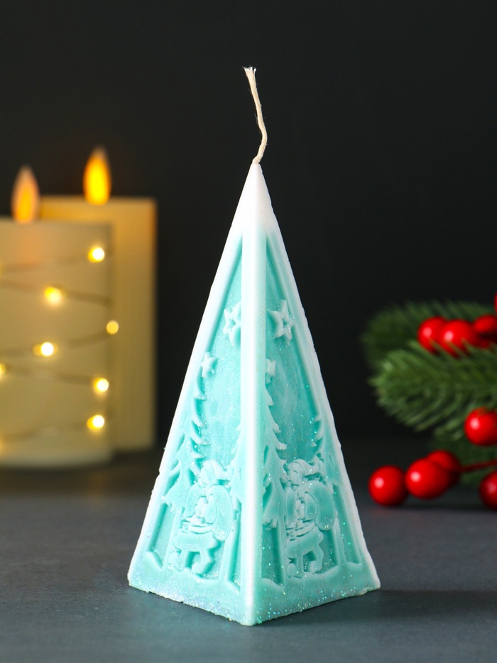Создайте волшебную атмосферу праздника! Новогодняя свеча-пирамида «Дед Мороз» — это изящное украшение в цвете «тиффани» для создания уютного зимнего настроения. Свеча станет центром новогоднего декора, наполняя пространство мягким, живым светом.