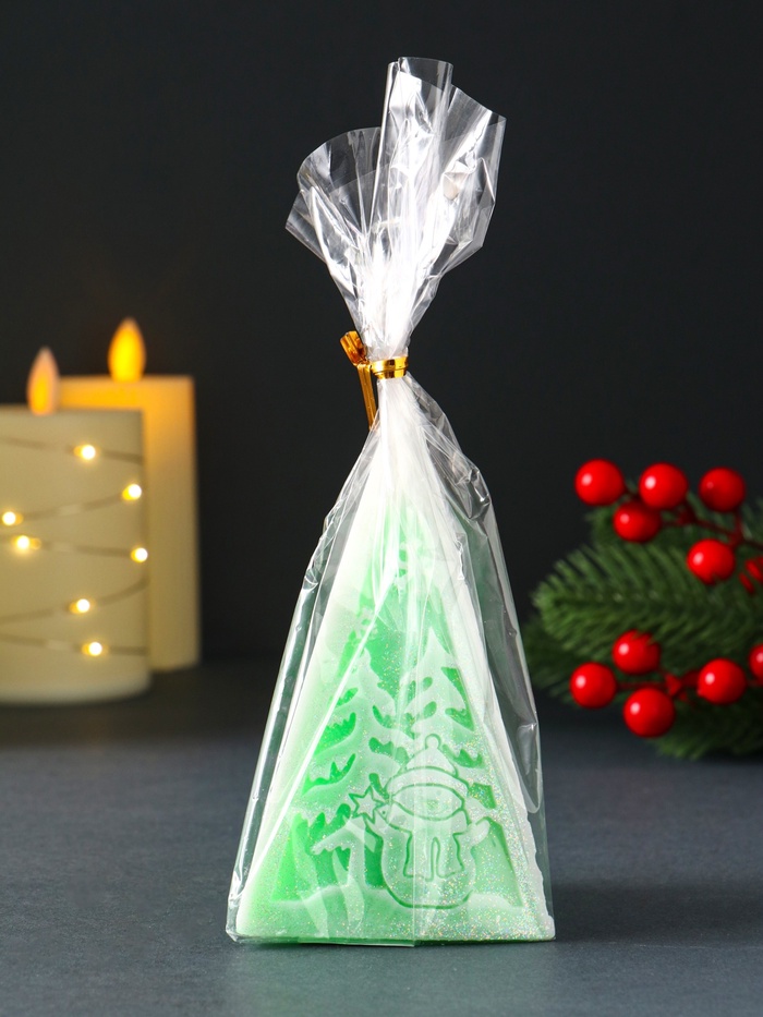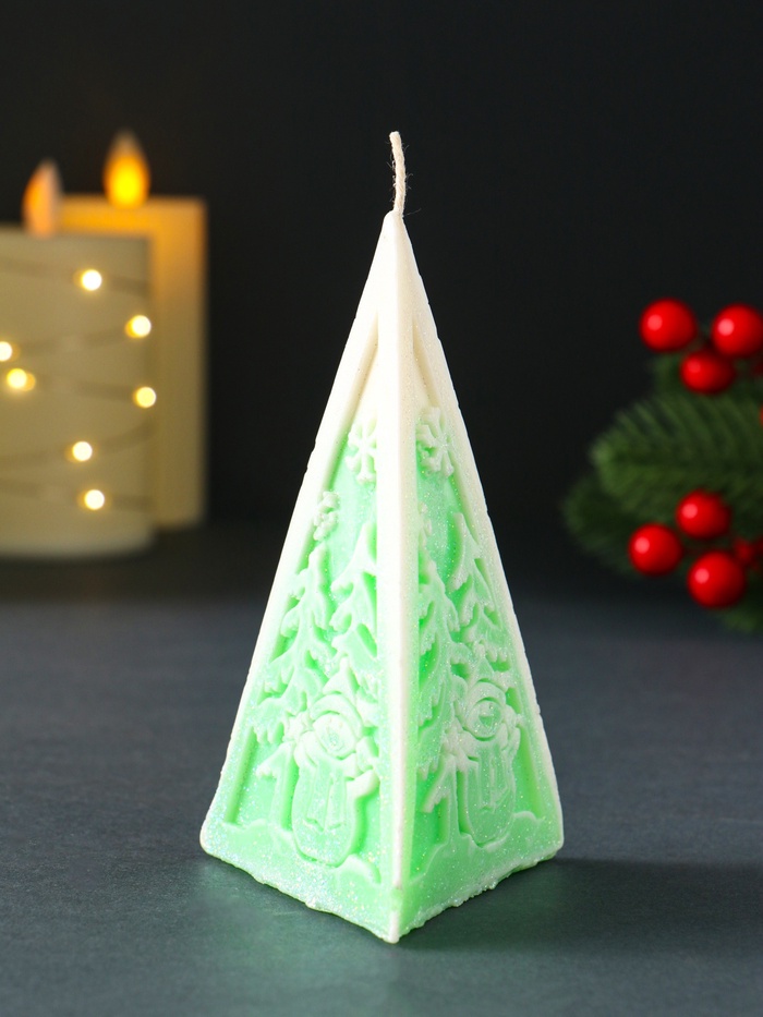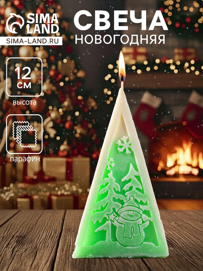 Эта праздничная свеча в виде снеговика станет душой новогоднего вечера. Её тёплый, живой огонь создаёт особенную атмосферу уюта и волшебства, наполняя дом предвкушением праздника. Лаконичная пирамидальная форма и насыщенный зелёный цвет делают её стильным украшением праздничного стола.