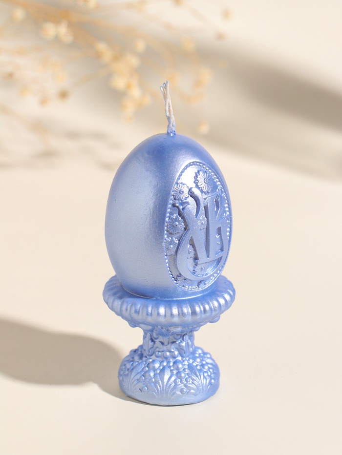 Свеча пасхальная «Яйцо на подставке ХВ», 5×9 см, лак, небесно-голубой
