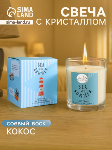 Свеча с кристаллом внутри Sea and Summer Jade orchid, 120 г, соевый воск, орхидея