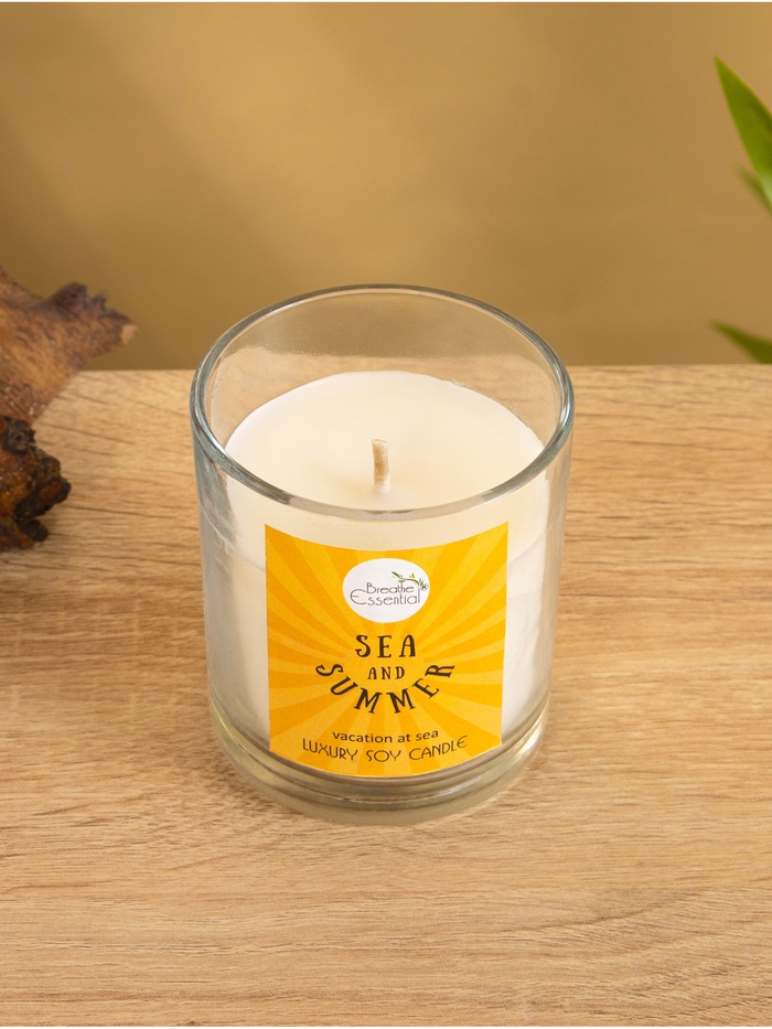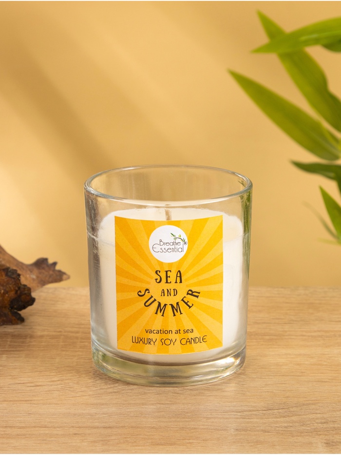 Свеча с кристаллом внутри Sea and Summer Vacation at Sea, 120 г, соевый воск, морской