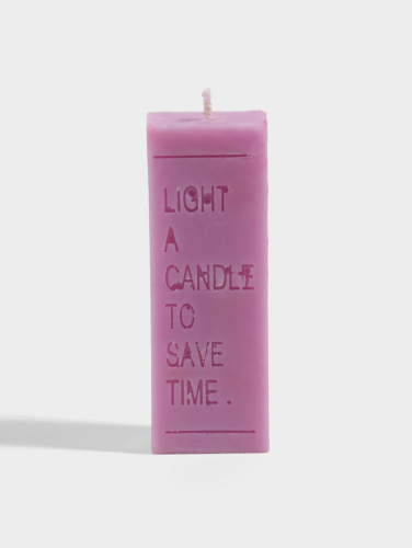 Высокая свеча из соевого воска с рельефной надписью Light a candle. Ее строгий силуэт и лаконичный посыл превращают процесс зажигания в осознанный ритуал, а чистое пламя становится символом паузы и перезагрузки.