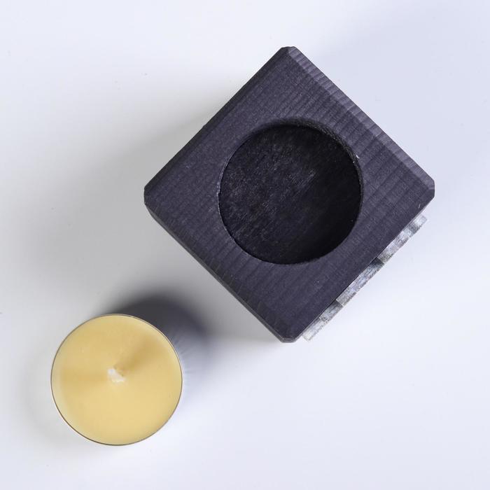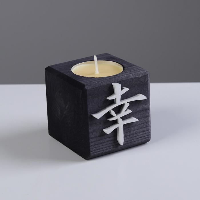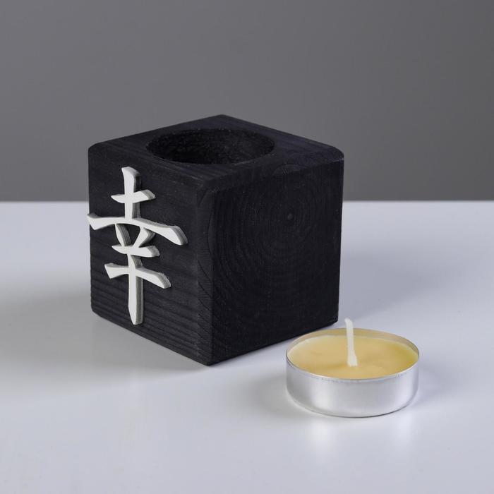 Свеча в деревянном подсвечнике «Куб. Иероглифы. Удача», цвет Эбен, 6×6×6 см, аромат манго
