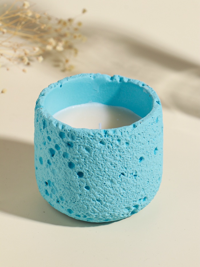 * Голубой оттенок свечи гармонично сочетается с природной фактурой камня.