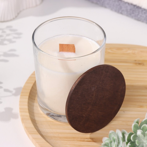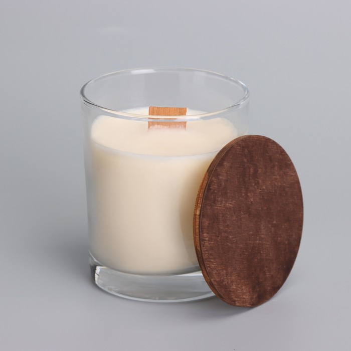 Свеча в стакане с деревянным фитилем и крышкой «Марокканский апельсин», из соевого воска