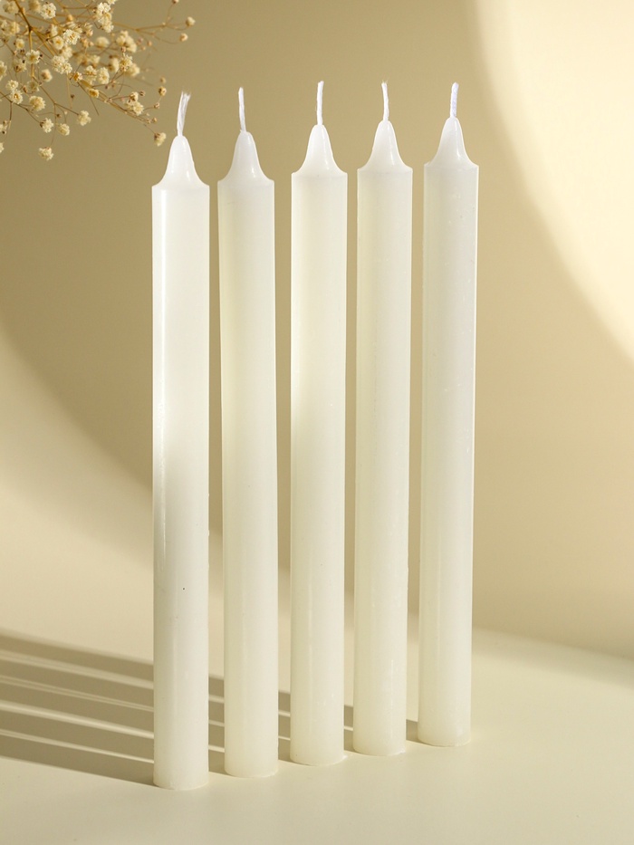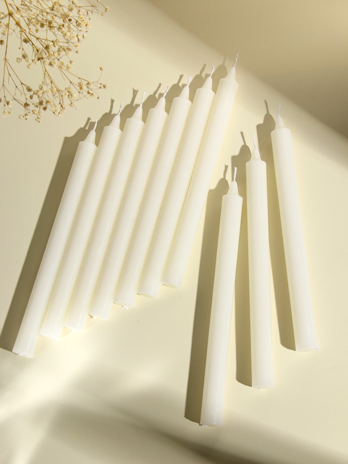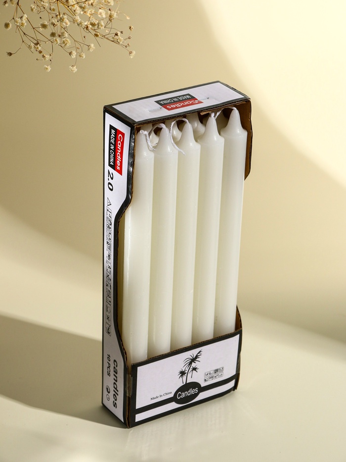 Их универсальный дизайн и чистый белый цвет гармонично впишутся в интерьер как праздничного стола, так и повседневного пространства. Комплект из 10 штук позволит использовать свечи для различных целей — от романтических ужинов до экстренного освещения при необходимости.