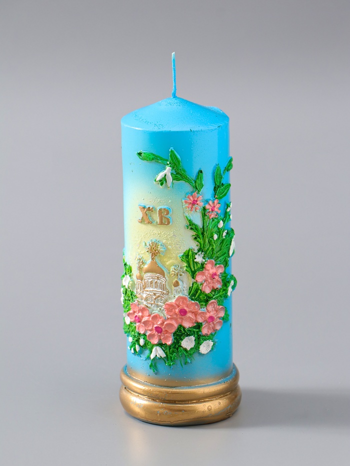 Голубая пасхальная свеча в виде столбика создаст в доме атмосферу светлого праздника. Её чистый, спокойный цвет напоминает о весеннем небе и символизирует надежду. Классическая цилиндрическая форма и ровное горение делают эту свечу универсальным элементом пасхального декора — она гармонично дополнит и праздничный стол, и домашний иконостас.