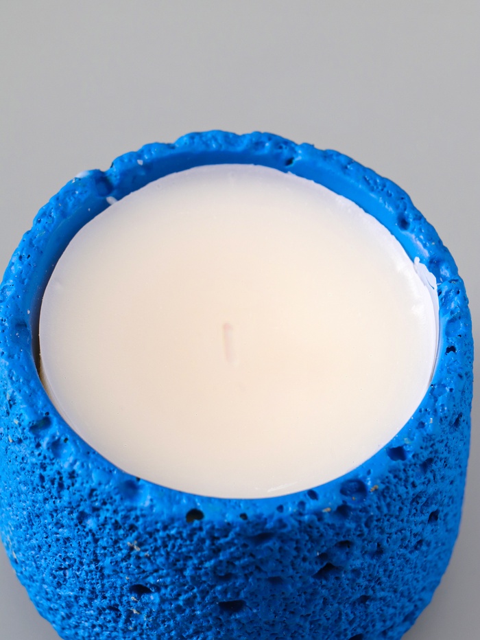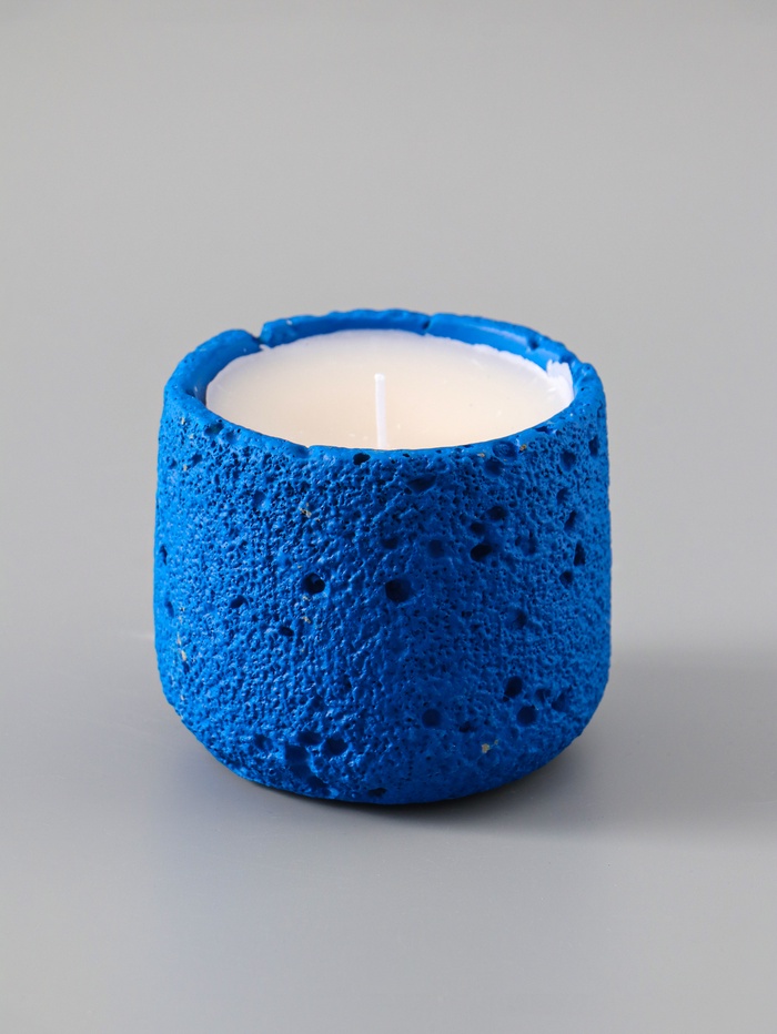 УЦЕНКА Свеча в подсвечнике вулканическом «Лава», синяя, 8.5×8.5×7.5 см