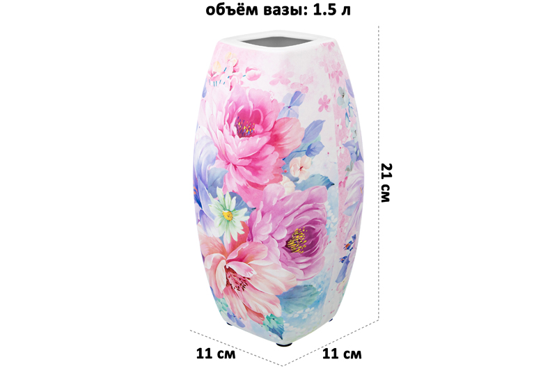 Ваза 1,5 л 11*11*21 см "Акварель" квадрат, NEW BONE CHINA