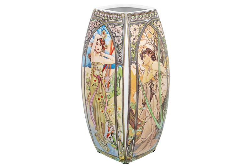 Настольная ваза Elan Gallery "Времена суток" размером 11х11х21 см и объёмом 1,5 литра прямоугольной формы выполнена из фарфора нового поколения new bone china. Благодаря современным технологиям этот вид не уступает традиционному костяному фарфору в прочности, но гораздо экологичнее в производстве. В коллекции бренда Elan Gallery можно найти много красивой посуды и предметов декора с изображениями по мотивам шедевров мировой живописи! Высокая вазочка украшена репродукциями картин и панно чешского художника Альфонса Мухи. На каждой стороне фарфорового изделия изображены девушки, символизирующие 4 времени суток. Яркий и узнаваемый сюжет удачно впишется в любой стиль интерьера, добавляя красоты и романтики. Интерьерная ваза подойдёт для размещения букетов, искусственных цветов или сухоцветов. Она послужит элементом декора вашего дома и поможет украсить его любыми растениями. Как красиво будут смотреться букеты из живых цветов и веточек на кухне и в любой комнате! Поставьте на видное место розы, тюльпаны или вербу для оформления интерьера в квартире. Интерьерная ваза украсит комнату даже без наполнения и подойдёт для создания декоративных композиций на журнальном столике или полке. Эргономичная форма позволит поставить в неё цветы с длинными стеблями. Не рекомендуется применять абразивные моющие средства. Поставляется в прочной красочной коробке. Станет шикарным подарком вашим близким на любой праздник. Благодаря стильной коробочке вам не понадобится дополнительная подарочная упаковка. Сделайте сюрприз ценителям искусства! Красивая фарфоровая ваза с рисунком станет украшением вашего дома и подчеркнёт красоту любого цветка. Ознакомьтесь с другими товарами для дома от Elan Gallery, здесь вы найдёте всё для создания домашнего уюта!