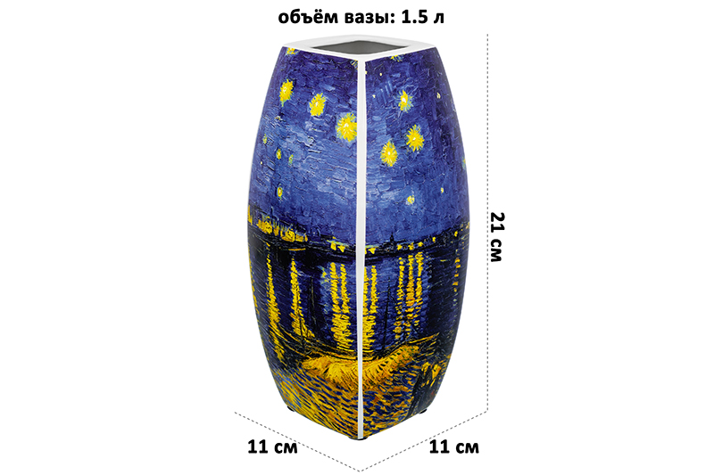 Ваза 1,5 л 11*11*21 см "Звездная ночь над Роной" квадрат, NEW BONE CHINA