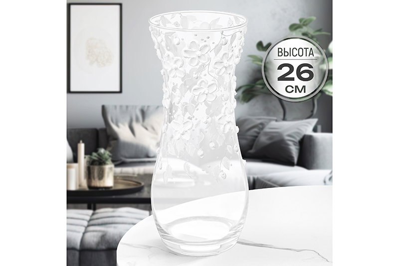 Ваза ручной выдувки «Белые цветы» от Elan Gallery послужит эстетичным дополнением вашего интерьера. Размер ёмкости – 11х11х26 см, объём – 1,4 литра. Выполнена из прозрачного стекла, её поверхность украшают рельефные цветки. Элегантная форма кувшина обеспечивает устойчивость и отлично подходит для размещения букетов с цветами на длинных стеблях, а также больших декоративных ветвей. Изделие станет прекрасным элементом декора вашей гостиной, спальни или прихожей, наполнив дом атмосферой гармонии и уюта. Подойдёт как для живых, так и для искусственных веток и цветков, а также для сухоцветов. Поставьте в неё букет из свежих тюльпанов, пионов или роз, расположите веточки вербы, чтобы привнести изысканности в квартиру, студию или загородный дом. Высокая и изящная, она добавит утончённости и красоты в оформление любого праздника или вечеринки. Стеклянная ваза прекрасно смотрится даже без наполнения. Не рекомендуется применять абразивные моющие средства. Не подходит для использования в посудомоечной машине. Поставляется в картонной коробке. Красивая ваза – отличный подарок для тех, кто ценит практичность и стиль. Она прекрасно дополнит ваш интерьер и станет ценным подарком для родных, близких и коллег. В коллекции бренда Элан Галерея есть всё необходимое для эстетичного преображения дома, дачи и офиса!