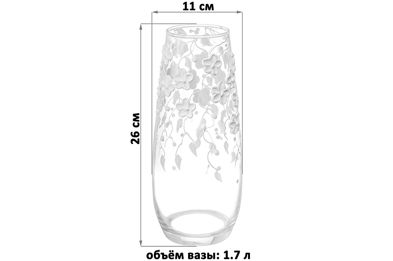 Ваза 11*11*26 см 1,7 л "Белые цветы" капля