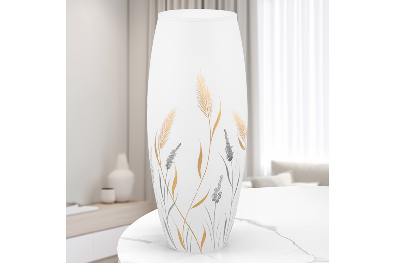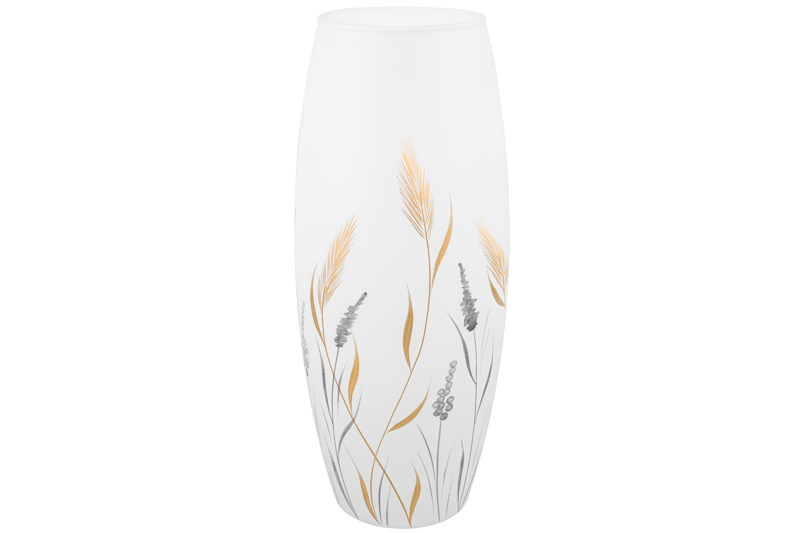 Ваза Elan Gallery "Колосья" белого цвета размером 11х11х26 см и объёмом 2 литра выполнена из прочного стекла, имеет оригинальный дизайн. Вазочка в форме бочонка с изображением золотых и серебряных растений подойдет для размещения букетов, искусственных цветов или сухоцветов. Эргономичная форма подходит для цветов с длинными стеблями. Стеклянная ваза послужит стильным элементом декора для вашего дома. Поставьте в нее цветы и вазочка изящно подчеркнет красоту букета. Интерьерная ваза украсит комнату даже без наполнения. Разместите её на столе или полке, чтобы создать в комнате стильный акцент. Не рекомендуется применять абразивные моющие средства. Декоративная ваза поставляется в прочной картонной упаковке. Станет шикарным подарком вашим близким: маме, бабушке, сестре или подруге на любой праздник. Красивая ваза с рисунком в золотистых и серебристых тонах станет украшением вашего дома и подчеркнёт красоту любого цветка!
