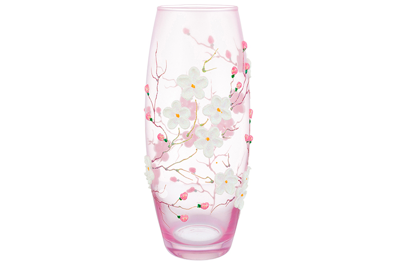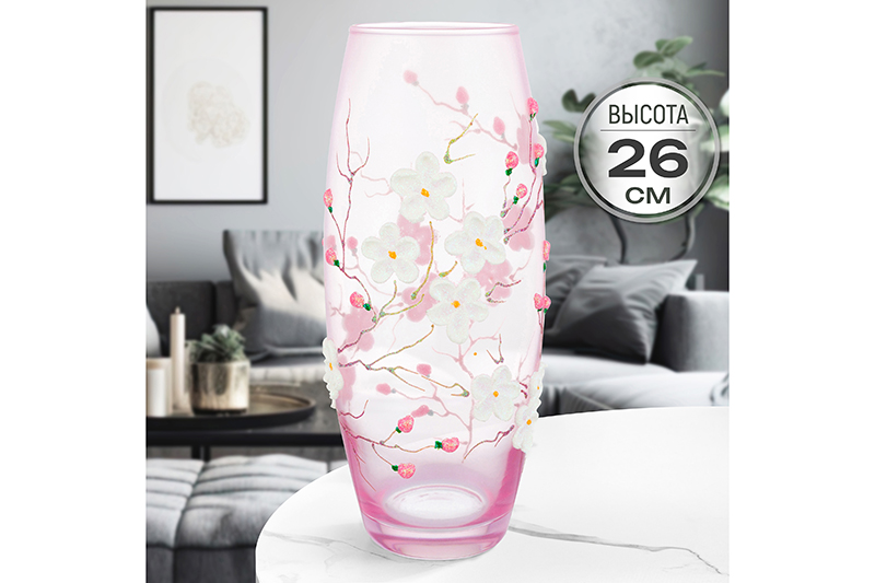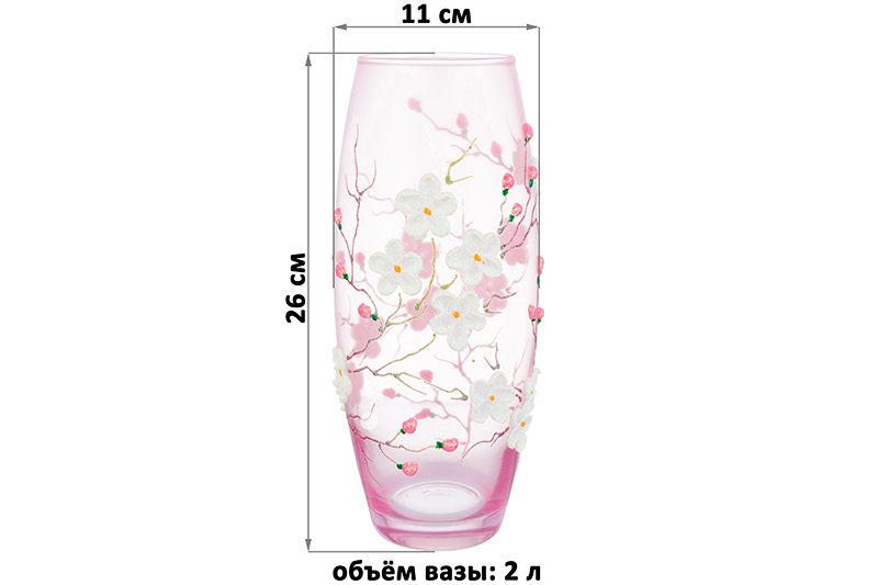 Ваза 11*11*26 см 2 л "Весеннее цветение на розовом" бочонок, стекло