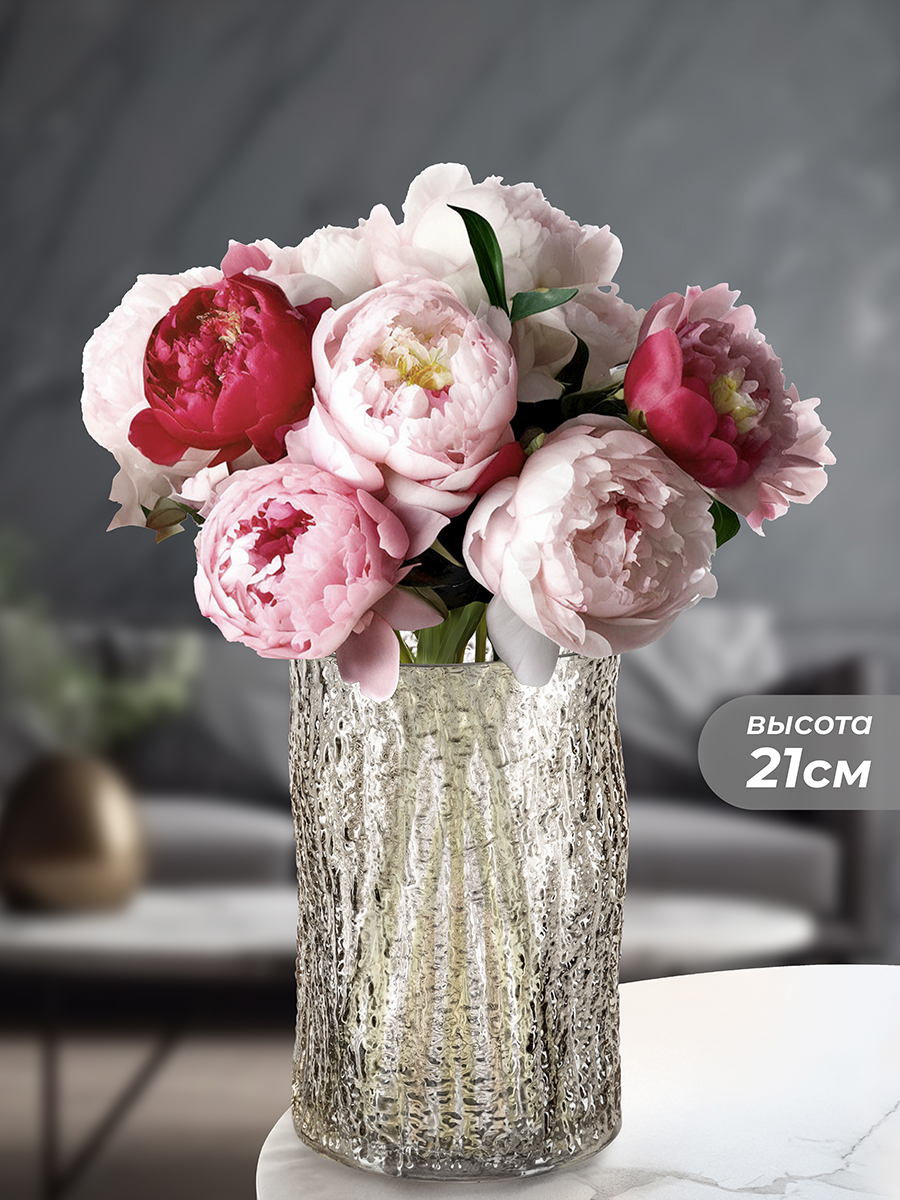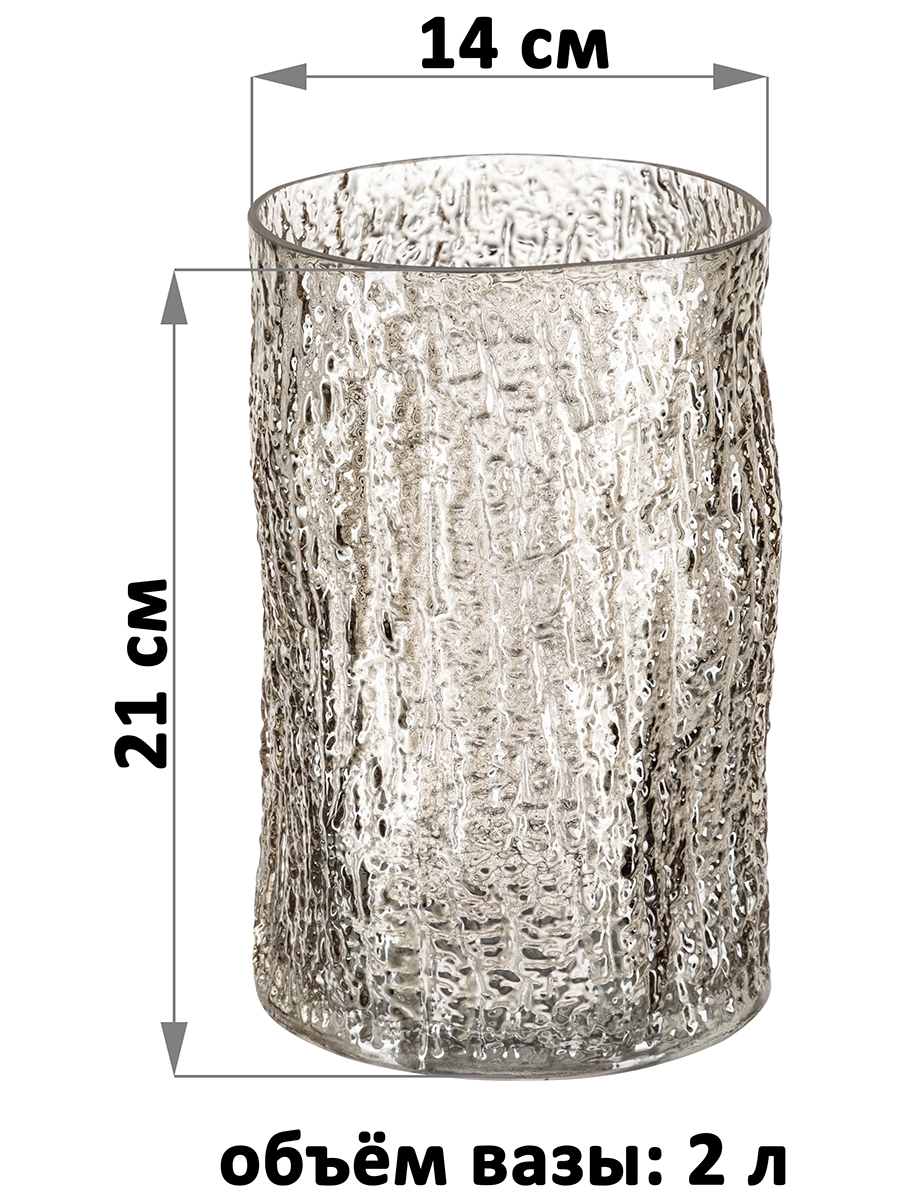 Ваза ручной выдувки от Elan Gallery послужит эстетичным и функциональным дополнением вашего интерьера. Размер ёмкости – 14х14х21 см, объём – 2 литра. Выполнена из стекла. Полупрозрачная серая поверхность украшена рельефом, имитирующим древесную поверхность. Широкое утолщённое дно обеспечивает устойчивость вазы. Благодаря своей форме она вместит даже пышный букет или цветочную композицию. Подойдёт для декоративных ветвей. Асимметричное изделие станет прекрасным элементом декора вашей гостиной, спальни или прихожей, наполнив дом атмосферой гармонии и уюта. Это отличный вариант для живых и искусственных веток и цветков, а также для сухоцветов. Поставьте в неё букет из свежих тюльпанов, пионов и роз. Расположите еловые или вербные веточки, чтобы привнести изысканности в квартиру, студию или загородный дом. Изящная ваза добавит утончённости и красоты в оформление любого праздника или вечеринки. Стеклянная ёмкость прекрасно смотрится даже без наполнения. Не рекомендуется применять абразивные моющие средства. Не подходит для использования в посудомоечной машине. Поставляется в картонной коробке. Красивая ваза – отличный подарок для тех, кто ценит стиль и практичность. Она прекрасно дополнит ваш интерьер и станет ценным подарком для родных, близких и коллег. В коллекции бренда Элан Галерея есть всё необходимое для эстетичного преображения дома, офиса и дачи!