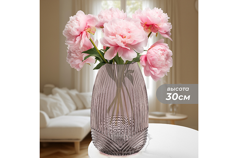 Ваза ручной выдувки от Elan Gallery объёмом 5,5 литра выполнена из стекла. Размер 19х19х30 см, внутренний диаметр горлышка 9,5 см. Прозрачная ваза украшена рельефным узором в виде полосок. Имеет оригинальный оттенок в виде бордово-коричневых переливов. Стильная вазочка с ребристой поверхностью послужит элементом декора для вашего дома! Основание вазы подчёркнуто рельефными дугами. Подойдёт для живых и искусственных цветов, веток и сухоцветов. В ней красиво будут смотреться букеты из любых цветов или веточек: роз, тюльпанов, вербы. Интерьерная ваза с рельефом украсит комнату даже без наполнения. Подойдёт для оформления декоративных композиций. Эргономичная форма позволит поставить в неё цветы с длинными стеблями. Разместите декоративную вазу на столе или полке, чтобы украсить спальню роскошным букетом пионов или другими растениями! На Новый год и Рождество поставьте в стеклянную вазочку еловые ветки с ёлочными игрушками для создания праздничной атмосферы. Не рекомендуется применять абразивные моющие средства. Поставляется в картонной коробке. Сделайте сюрприз своим близким или коллегам на любой праздник! Предметы декора – хороший подарок как мужчине, так и женщине. Красивый дизайн и функциональность понравятся каждому! Рифлёная вазочка станет украшением домашнего интерьера и подчеркнёт красоту любого цветка. В коллекции бренда Elan Gallery можно найти много стильных товаров для дома. Здесь есть всё для создания уюта в квартире и на даче!
