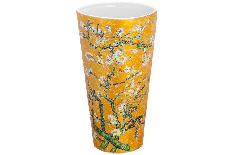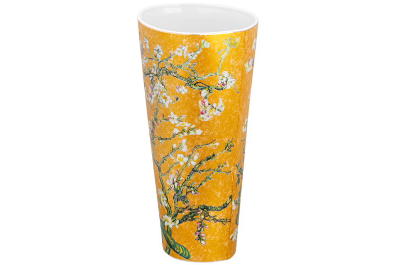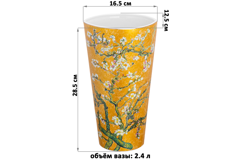 Ваза Elan Gallery "Цветущий миндаль" размером 16,5х12,5х28,5 см и объёмом 2,4 литра выполнена из качественного фарфора нового поколения new bone china. Благодаря современным технологиям этот вид не уступает традиционному костяному фарфору в прочности, но при этом гораздо экологичнее в производстве. Яркий и узнаваемый сюжет с картины Ван Гога удачно впишется в любой стиль интерьера, добавляя красоты и романтики. Интерьерная ваза подойдёт для размещения букетов, искусственных цветов или сухоцветов. Стильная вазочка послужит элементом декора для вашего дома. В ней красиво будут смотреться букеты из любых цветов или веточек: роз, тюльпанов или вербы. Интерьерная ваза украсит комнату даже без наполнения. Эргономичная форма позволит поставить в неё цветы с длинными стеблями. Разместите декоративную вазу на столе или полке, чтобы создать в комнате стильный акцент. Не рекомендуется применять абразивные моющие средства. Большая настольная ваза поставляется в стильной картонной упаковке. Станет приятным подарком вашим близким: маме, бабушке, сестре или подруге на любой праздник. Красивая ваза с рисунком украсит ваш дом и подчеркнёт красоту любого цветка!