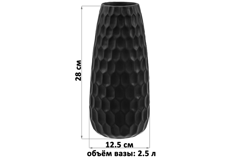 Ваза 28 см 2,5 л "Соты" черная матовая