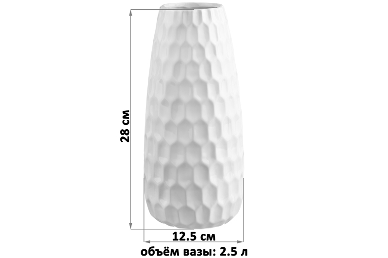 Настольная ваза Elan Gallery "Соты" размером 12,5х12,5х28 см и объёмом 2,5 литра выполнена из керамики. Диаметр горлышка – 6,5 см. Высокая вазочка в оттенке "пломбир" украшена рельефным узором, напоминающим пчелиные соты. Интерьерная ваза в стиле минимализм подойдёт для размещения букетов, искусственных цветов или сухоцветов. Она послужит элементом декора вашего дома и поможет украсить его любыми растениями. Как красиво будут смотреться букеты из цветов и веточек на кухне, а также в любой другой комнате! Поставьте на видное место розы, тюльпаны или вербу для оформления интерьера в квартире. Интерьерная ваза украсит комнату даже без наполнения и подойдёт для создания декоративных композиций на журнальном столике или полке. Эргономичная форма позволит поставить в неё цветы с длинными стеблями. Не рекомендуется применять абразивные моющие средства. Поставляется в красочной картонной коробке с логотипом бренда. Станет чудесным подарком на любой праздник. Благодаря стильной коробочке вам не понадобится дополнительная подарочная упаковка. Сделайте сюрприз ценителям эстетики! Красивое керамическое изделие станет украшением вашего дома и подчеркнёт красоту любого цветка. Ознакомьтесь с другими товарами для дома от бренда Элан Галерея, здесь вы найдёте всё для создания домашнего уюта!