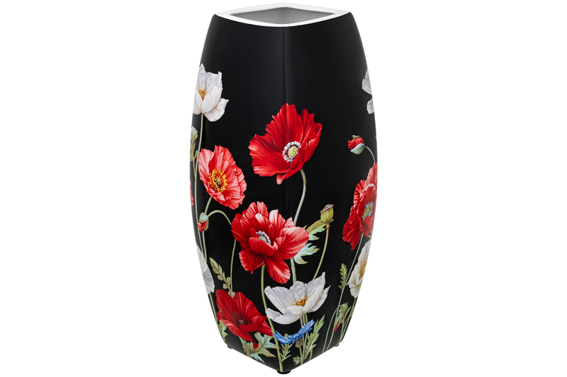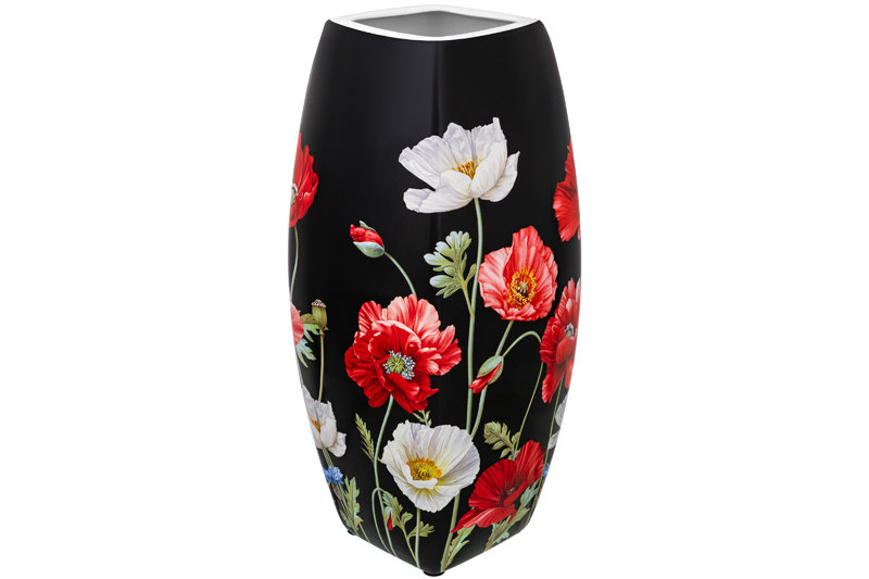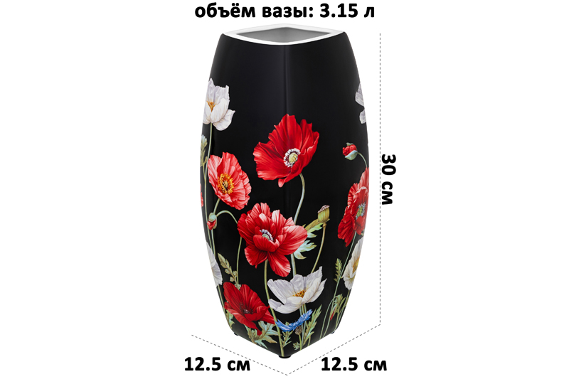 Ваза 3,15 л 12,5*12,5*30 см "Маки на черном" квадрат, NEW BONE CHINA